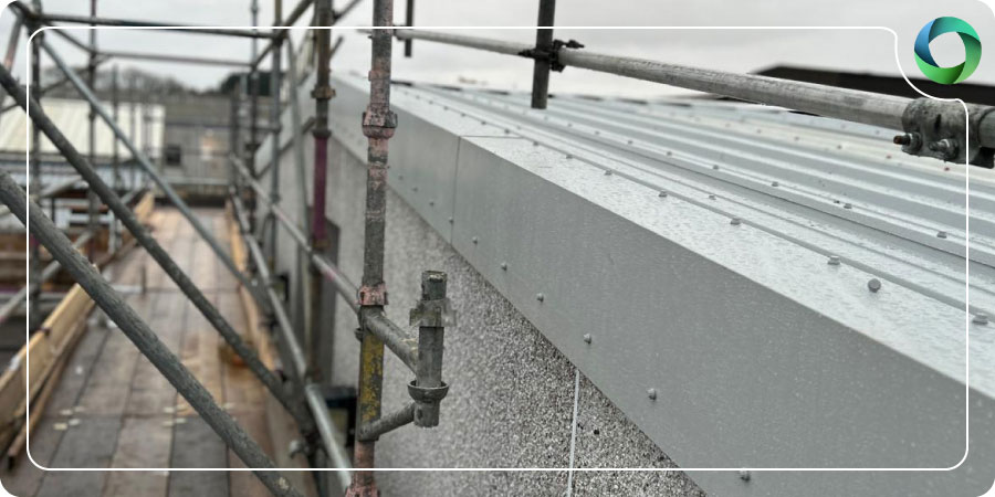 Scaffolding and Safety: Installed scaffolding for safe access to elevated work areas, supporting the removal and replacement process.